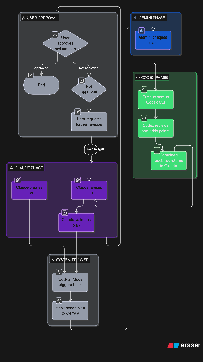 v2: this post now covers two approaches. the original sequential critique (reviewers see Claude's finished plan) and the new council system (all models explore in parallel). skip to council planning for the new approach.